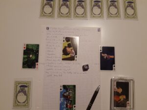 Jakie widzę wady gry? Jej “solowość”, o czym już wspominałem, jest zarówno minusem jak i plusem. Potrzebna jest dość bujna wyobraźnia żeby móc zagrać w “Koci sen”. Wydaje mi się jednak, że fani Studia Ghibli i baśni powinni sobie poradzić, szczególnie, że tabele z podręcznika i karty nieraz potrafią świetnie naprowadzić gracza na właściwy tor. Czasem jednak mogą utrudniać kontynuowanie gry. I wtedy trzeba bardziej się wysilić, żeby znaleźć rozwiązanie. Ewentualnie zignorować los i spróbować znowu. W końcu chodzi o zabawę, nie dręczenie się. Inna niewielka wada, która tyczy się chyba każdego podręcznika do RPG, to fakt, że jednokrotne przeczytanie nie gwarantuje zrozumienia wszystkiego. Podczas pierwszej sesji zapewne będziecie wertować książkę ponownie, bo coś przegapiliście albo nie zrozumieliście. To może być nieco frustrujące. Miałem tak samo, mimo, że w RPG gram od wielu lat. Moja rada – nie zniechęcajcie się, za drugim razem będzie dużo łatwiej. Ostatnią wadą może być to, że opcje rozgrywki są skończone. Mamy w końcu do czynienia “tylko” z 52 kartami i rzutami kostką sześcienną, które nam generują postaci i przygody. Wydaje mi się jednak, że ta ograniczoność jest pozorna. Opcje losowe w tabelach są na tyle ogólnie sformułowane, że mogą pasować do przeróżnych światów i przygód. Można też liczyć na to, że w przyszłości pojawią się dodatki do gry.