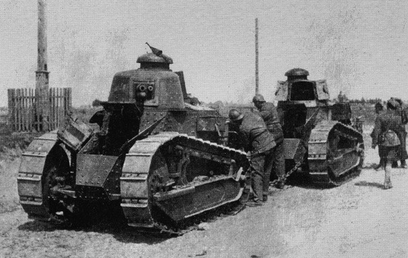 - Czołg FT17 w trakcie działań podczas I wojny światowej.