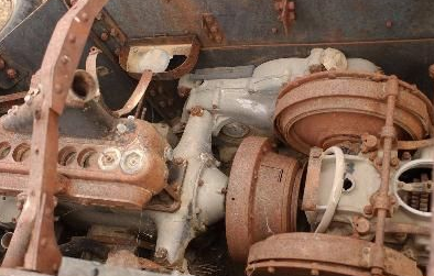 - Zardzewiały silnik jednego z dwóch znalezionych przez Amerykanów czołgów FT.
