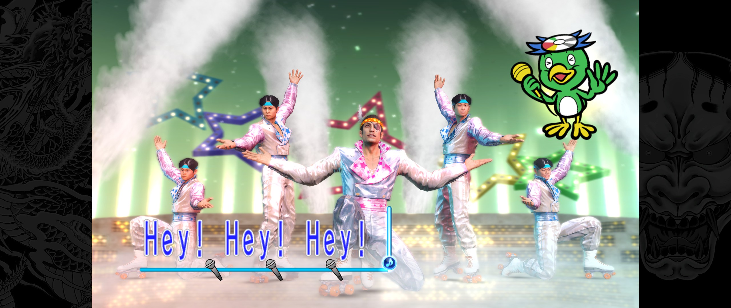 Konieczną do poruszenia jest też kwestia dźwięku. Ulice miast oraz miejsca i lokale brzmią wiarygodnie. Ani przez moment nie odczułem, żeby którakolwiek z lokacji nie była “żywa”. Wręcz przeciwnie – zamknięcie oczu i odrobina wyobraźni pozwalała się przenieść do Japonii bez większego wysiłku. Natomiast ścieżka dźwiękowa/muzyka… przez większość czasu zwyczajnie nie przeszkadza. Jest bardzo japońska i bardzo “segowa”. Przez pozostałą część natomiast… jest potwornie poruszająca! Zabawa w karaoke przy takich bangerach jak “Judgement shinpan”, “24 hour Cinderella” czy oczywiście “Bakamitai”, to czysta frajda (dodatkowo świetnie oprawiona graficznie). Ścieżka dźwiękowa jest też bogata w utwory idealnie budujące nastrój do przemyśleń oraz natychmiastowo podnoszące poziom adrenaliny, gdy za pomocą pięści trzeba udowodnić, że to Kiryu i Majima mają rację.